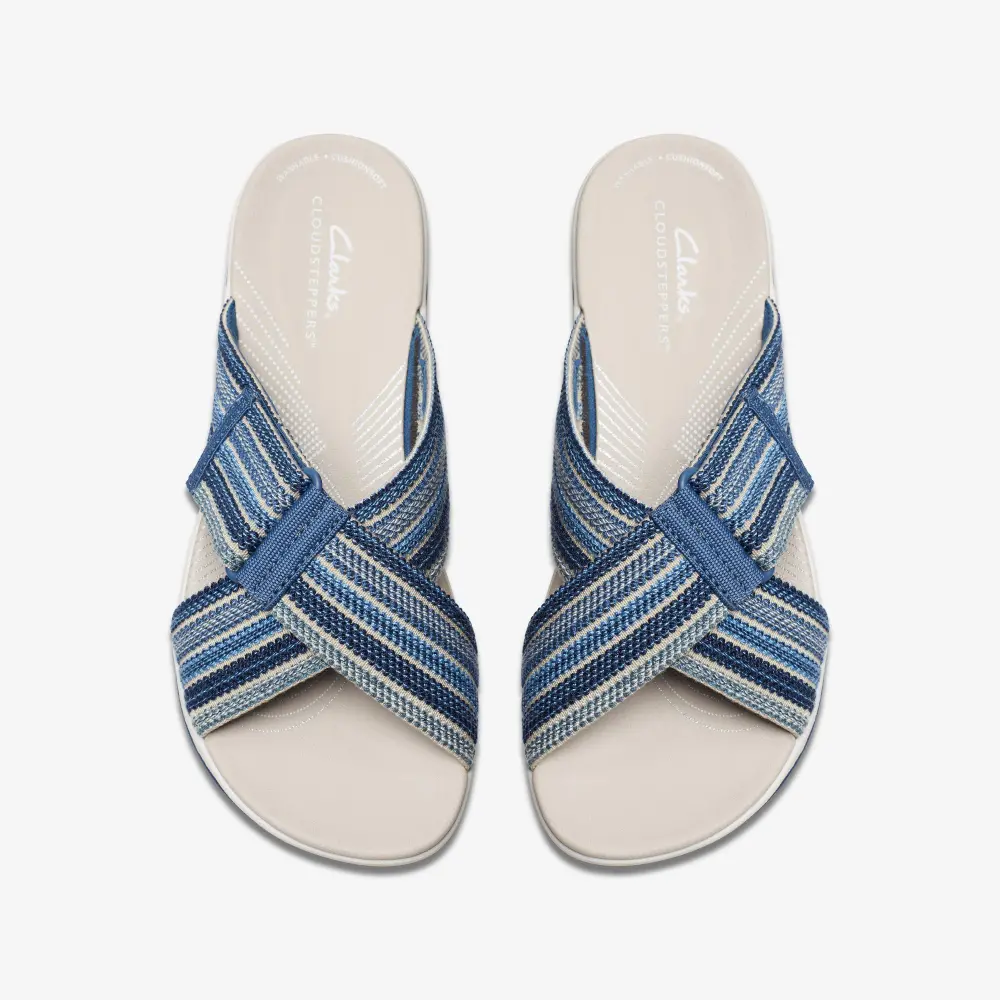 Packen Sie leicht und genießen Sie unbeschwerten Tragekomfort in dieser Saison mit Arla Wave – dem Neuzugang unserer Cloudsteppers™ Kollektion. Das weiche, riemenartige blaue Obermaterial mit modernem Schnallendetail umschließt den Fuß perfekt, während das Cushion Soft™ Fußbett und das geschwungene Design für optimalen Komfort sorgen. Die perfekte Alternative zum Barfußlaufen in diesem Sommer.