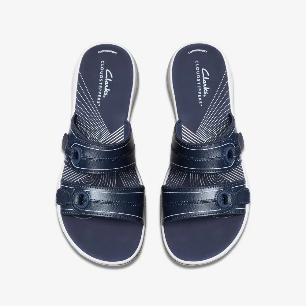 Der Slip-on Cloudsteppers™ Schuh Breeze Maye fühlt sich dank weichem Schaumstoff unter dem Fuß und einem stoßdämpfenden Fußbett federleicht an. Mit diesem lässigen Paar Schuhe genießen Sie die schönsten Seiten der Saison. Das weiche, marineblaue Synthetik-Obermaterial ist in einem schlichten Riemchen-Design gehalten, während die griffige Sohle sicheren Halt und ein angenehmes Laufgefühl bietet.