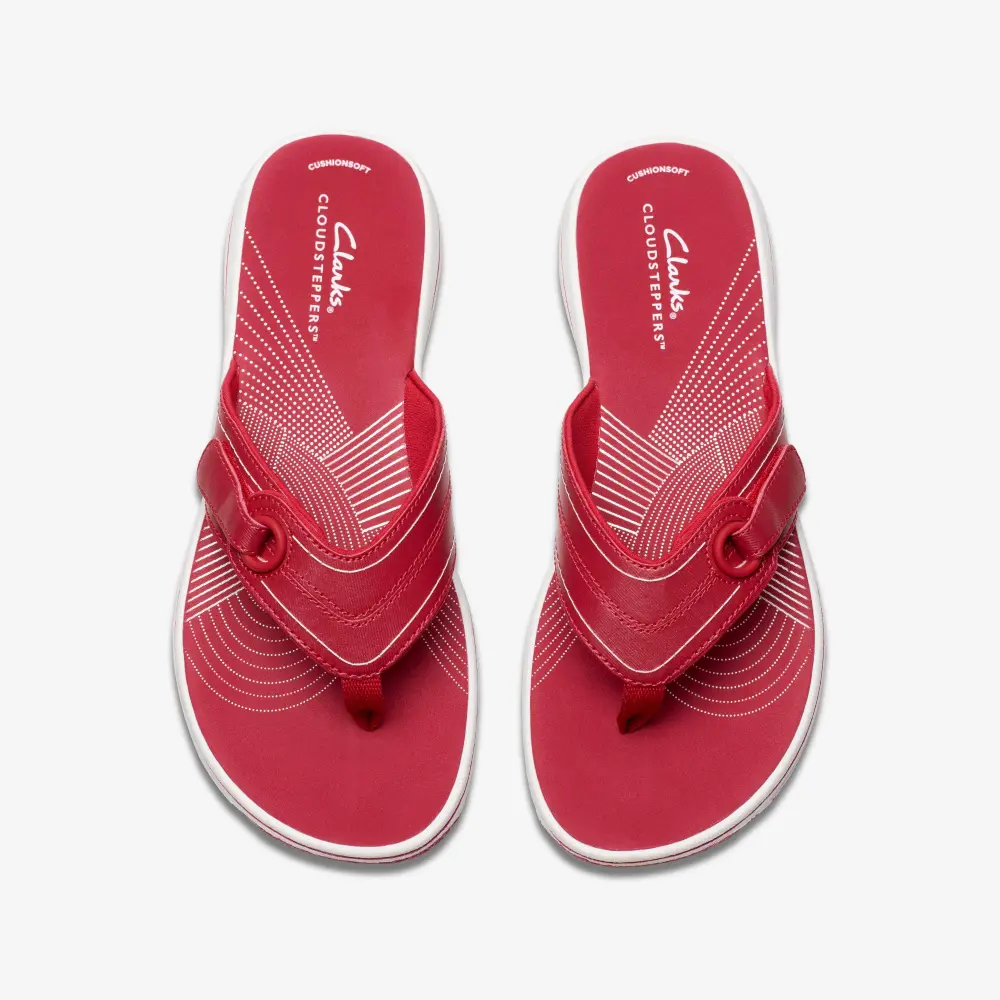 Der Flip-Flop Breeze Reyna ist neu in unserer Cloudsteppers™ Kollektion. Amerikas beliebtester Flip-Flop ist zurück – mit neuem Look und dem gewohnten Tragekomfort des Breeze Sea. Er ist perfekt für warme Urlaube und aktive Tage. Das Obermaterial aus kirschrotem Synthetikmaterial fühlt sich angenehm auf der Haut an, während die griffige Sohle sicheren Halt und ein leichtes Laufgefühl bietet.