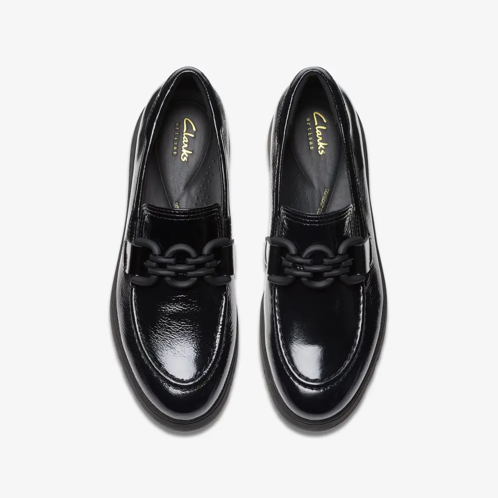- Obermaterial aus hochwertigem schwarzem Lackleder