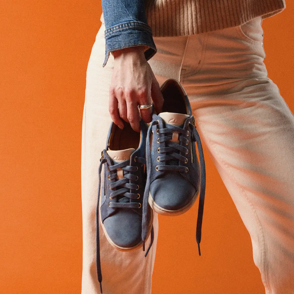 - Obermaterial aus blauem Nubuk- und Wildleder mit blauen Akzenten