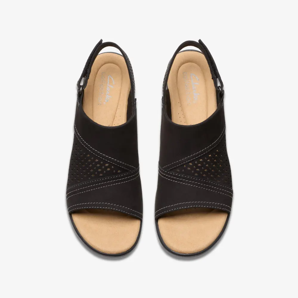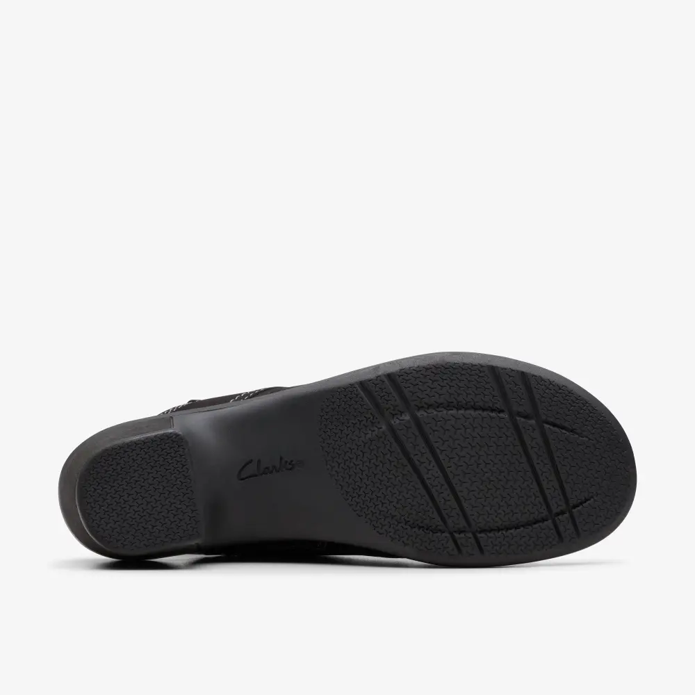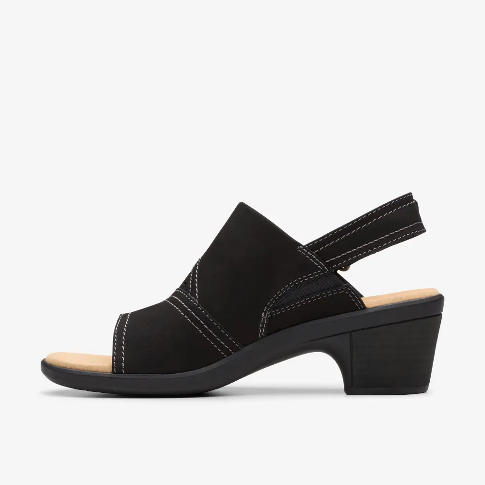 Unsere Emily 2 Mist Sandale besticht durch einen bequemen Blockabsatz, der Ihre Silhouette optisch verlängert, ohne dabei auf den gewohnten Clarks-Komfort zu verzichten. Das weiche, schwarze Nubukleder-Obermaterial sorgt für eine hochwertige Optik, während unser Ultimate Comfort-Schaumstoff-Fußbett maximalen Komfort bei jedem Anlass im Sommer bietet.