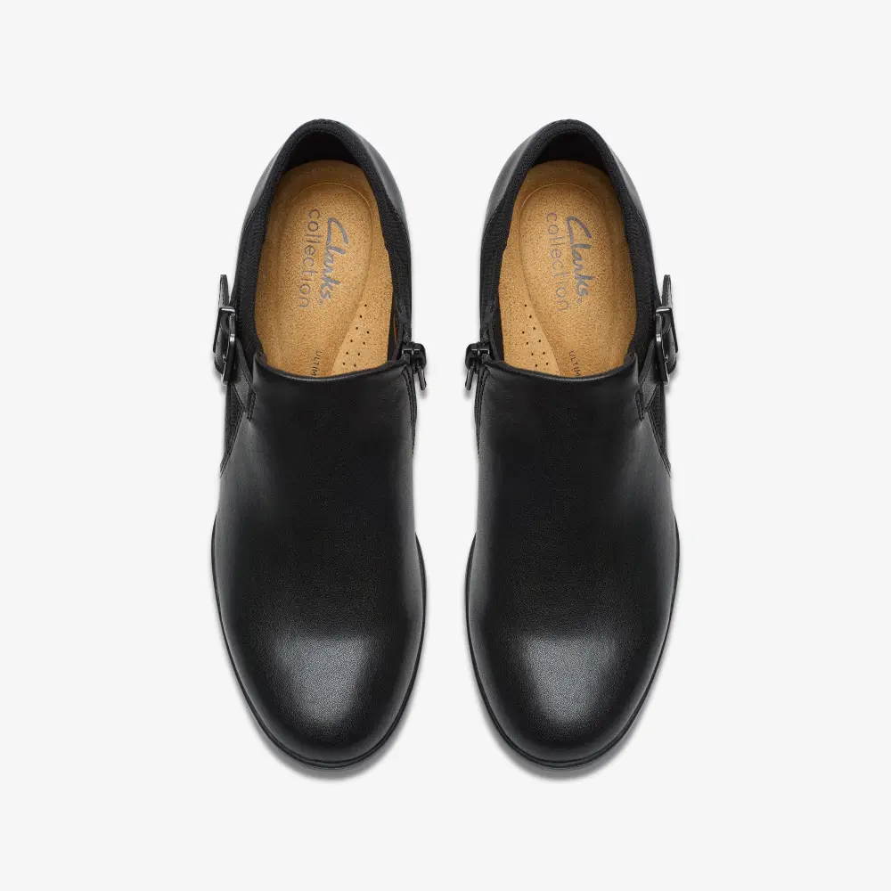 - Hochwertiges schwarzes Leder-Obermaterial mit dekorativer Schnalle