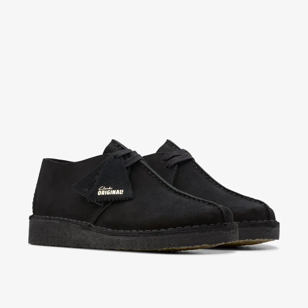 Der Desert Trek, eine Ikone für jeden Tag, kehrt in zeitlosem Schwarz zurück und ist bereit für eine Saison voller vielseitiger Stylingmöglichkeiten. Das butterweiche Wildleder-Obermaterial bildet einen perfekten Kontrast zur Kreppsohle, während flache Schnürsenkel und unsere klassischen Anhänger für einen lässigen Look sorgen.