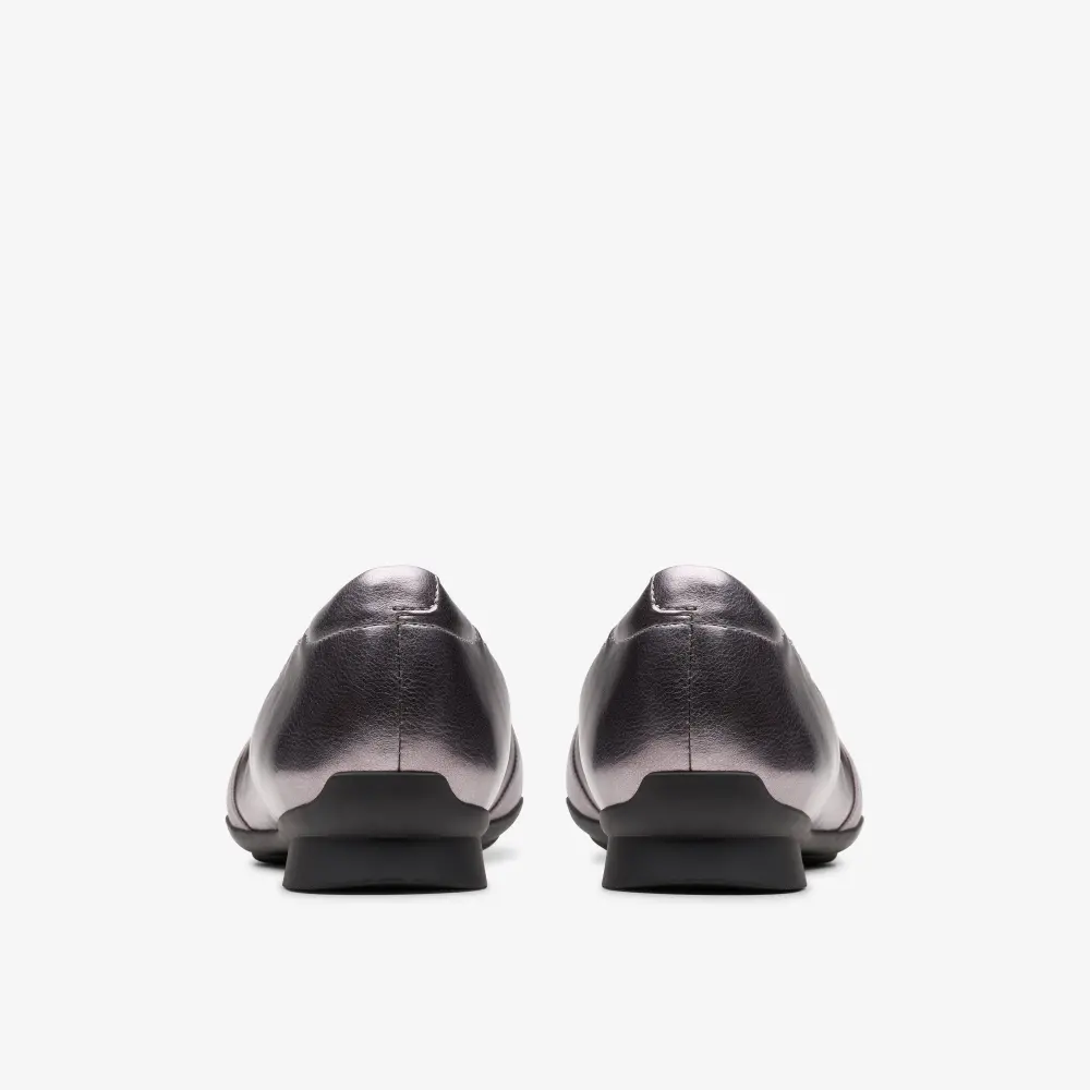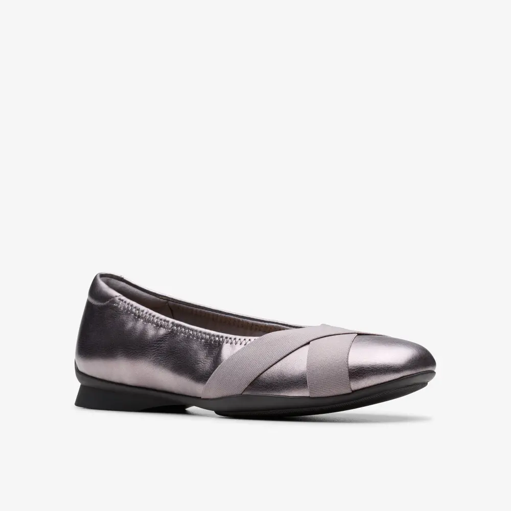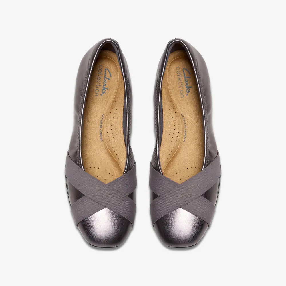 Wir präsentieren Jazmynn Gem – einen modernen Klassiker, einen komfortablen, vom Ballerina-Stil inspirierten Schuh, der für ganztägigen Tragekomfort konzipiert wurde. Gefertigt aus weichen, hochwertigen Materialien, verfügt er über eine TPR-Sohle für Halt und Flexibilität sowie ein weiches Ultimate Comfort PU-Schaum-Fußbett für ganztägigen Komfort und Unterstützung. Das hochwertige, dunkelgraue Metallic-Obermaterial mit synthetischen Details sorgt für optimalen Tragekomfort. Das Ultimate Comfort-Schaum-Fußbett bietet ganztägigen Halt. Atmungsaktives Mikrofaser-Fußbettfutter rundet das Design ab. Die flexible TPR-Sohle (thermoplastischer Gummi) bietet optimale Traktion. Absatzhöhe: 15 mm.