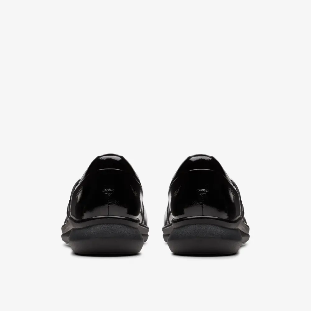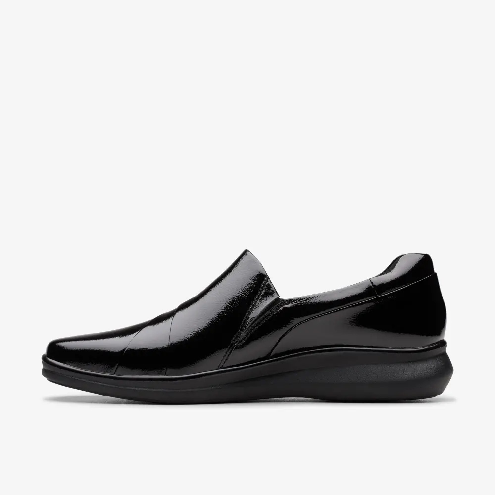 - Obermaterial aus hochwertigem schwarzem Lackleder