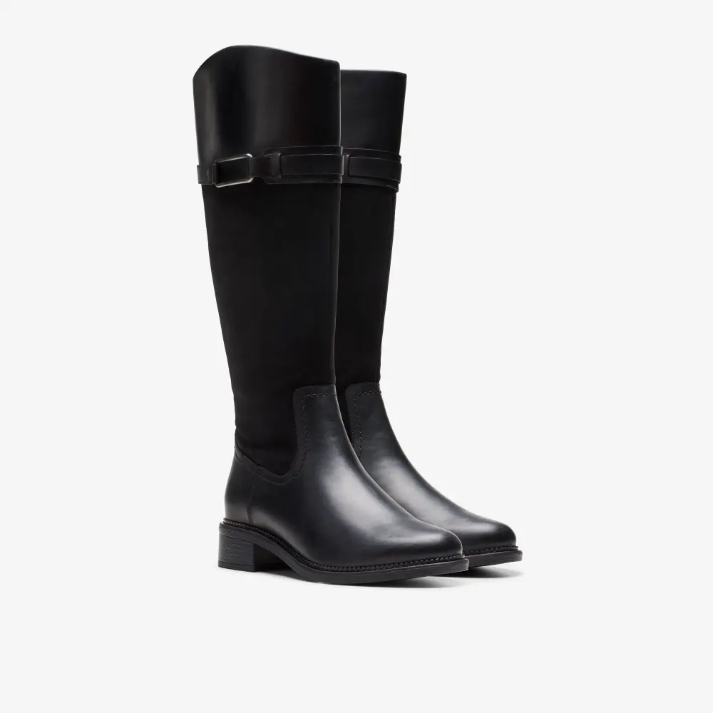 Genießen Sie mühelose Eleganz mit den Maye Carly Stiefeln. Dieses Modell mit hohem Schaft beweist, dass es auf die Details ankommt. Der klassische Stil zeichnet sich durch einen abgerundeten Schaftrand, eine Konstruktion aus zwei Materialien, einen trendigen Blockabsatz und ein goldfarbenes Zierelement aus.