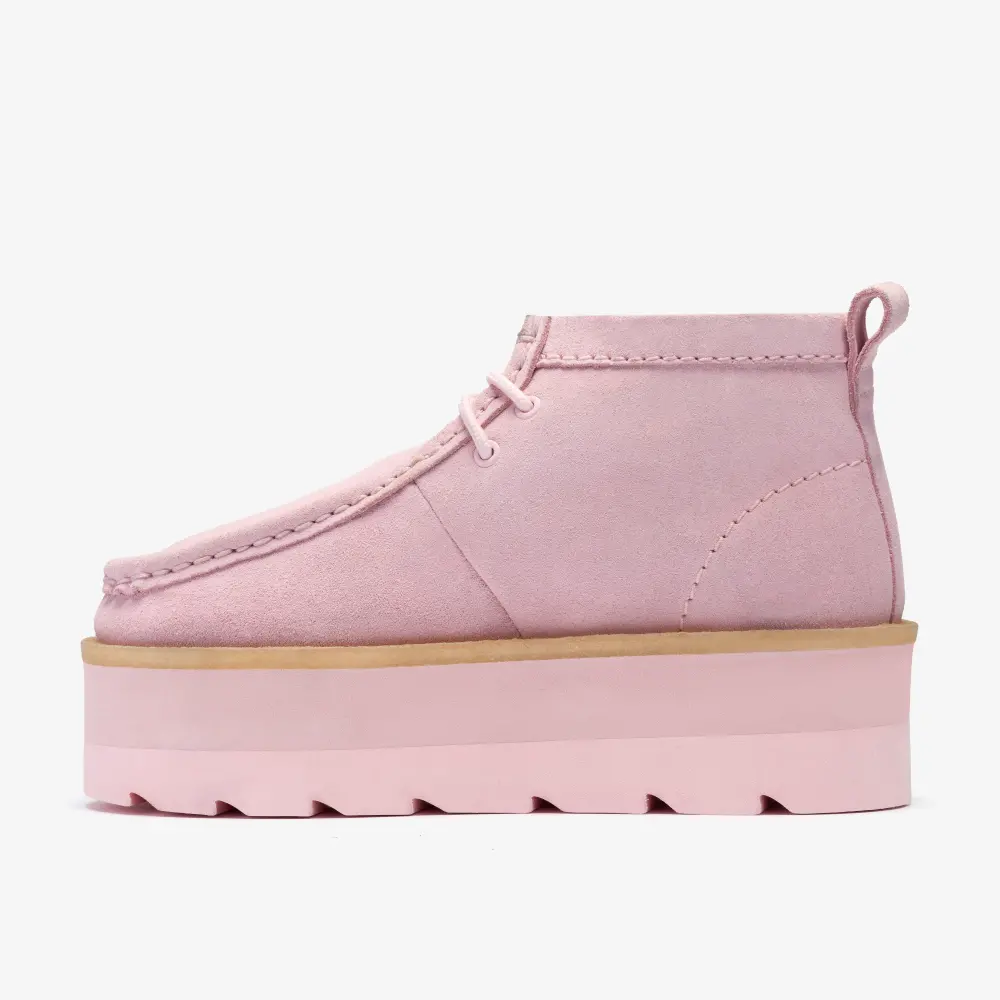 - Obermaterial aus hochwertigem, hellrosa Wildleder