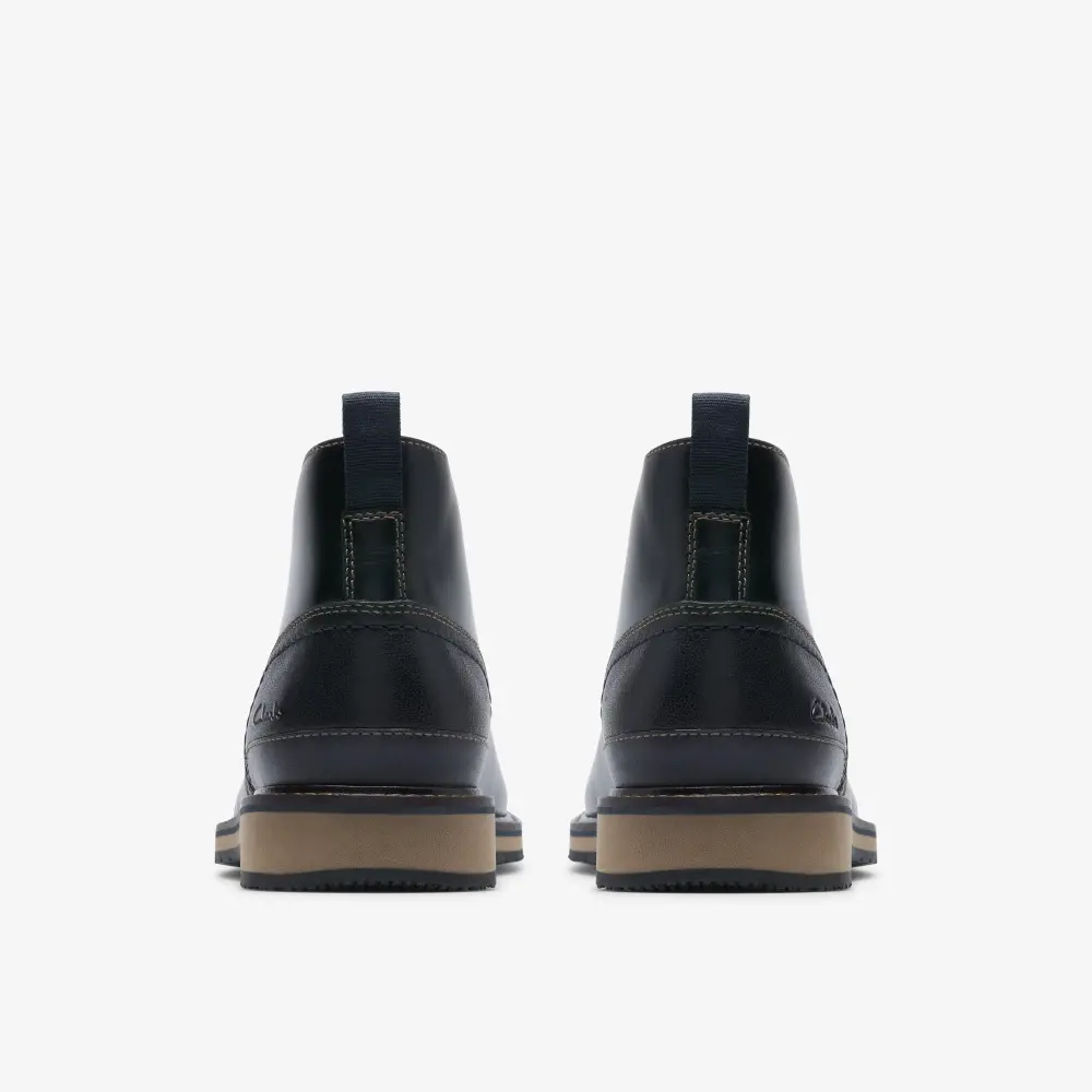 Der Monahan Chukka ist ein klassischer Freizeitstiefel mit einem Obermaterial aus glattem, schwarzem Leder, der allen Anforderungen des Tages gewachsen ist. Dank des äußerst stützenden EVA-Fußbetts und der Zwischensohle bietet dieses vielseitige Modell optimalen Tragekomfort. Die sportlich inspirierte, griffige Gummisohle sorgt für ein federleichtes und sicheres Laufgefühl.