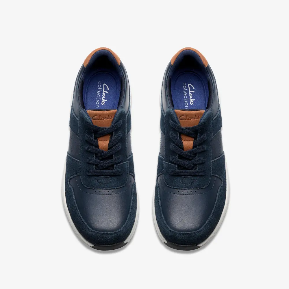 - Hochwertiges Obermaterial aus marineblauem Leder
