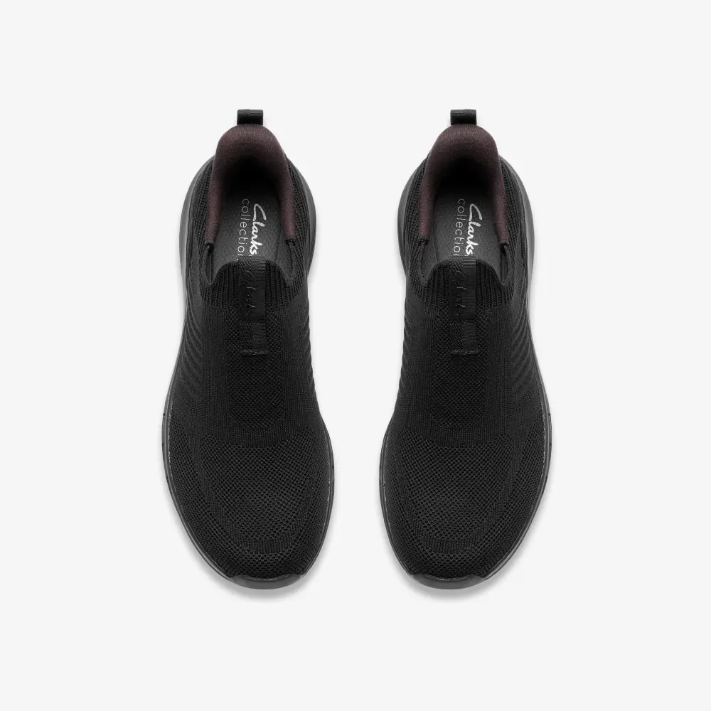 Wir präsentieren Motion Trek IN – unsere neueste sportlich inspirierte Freizeitschuh-Silhouette. Dieses moderne Modell besticht durch ein atmungsaktives, schwarzes Funktionsstrick-Obermaterial, während Leder-Fersenverstärkungen für Struktur und Halt sorgen und die Optik aufwerten. Dank des Slip-on-Designs mit sockenähnlicher Passform und der verlängerten Ferse ist der Schuh besonders bequem und verkörpert den angesagten Athleisure-Style.