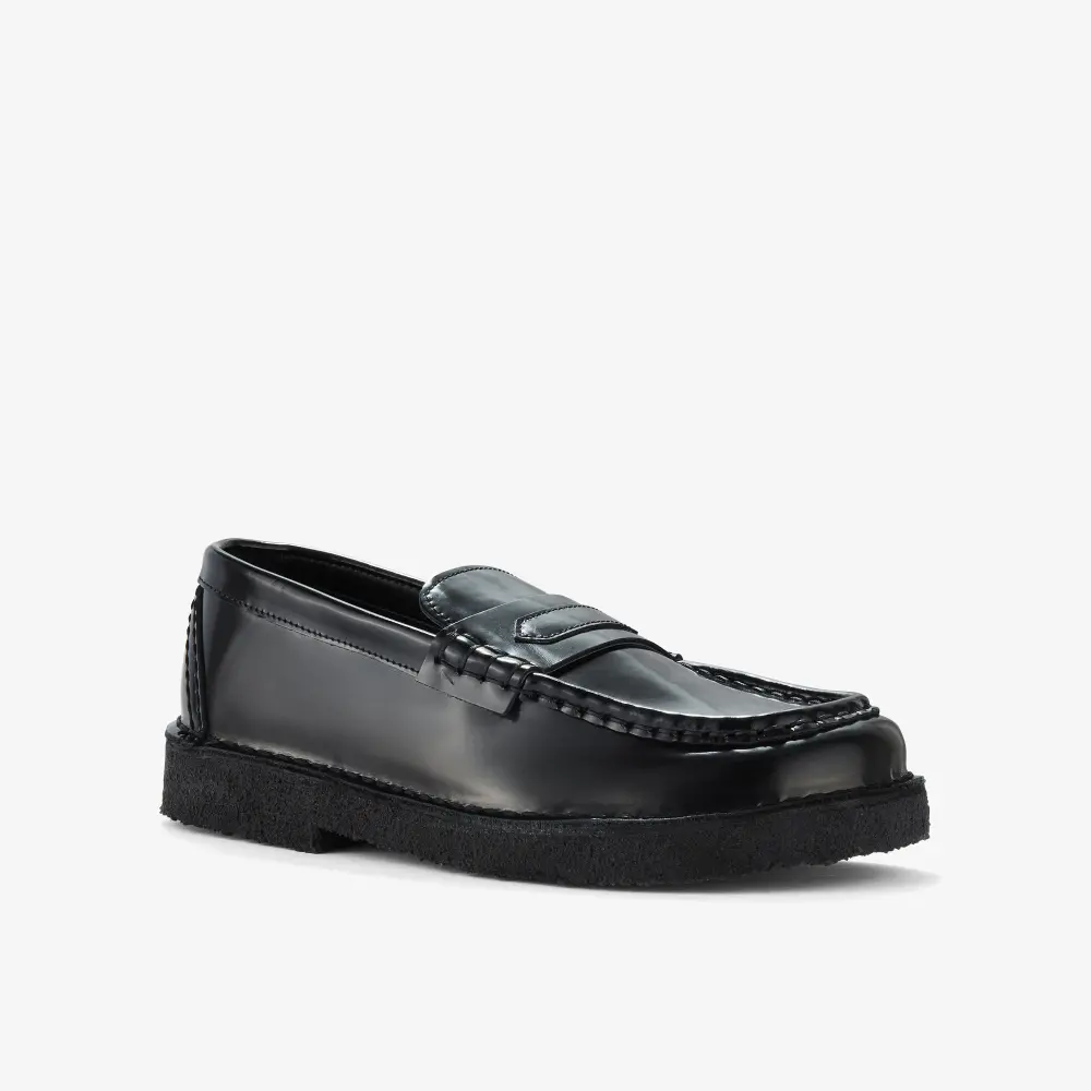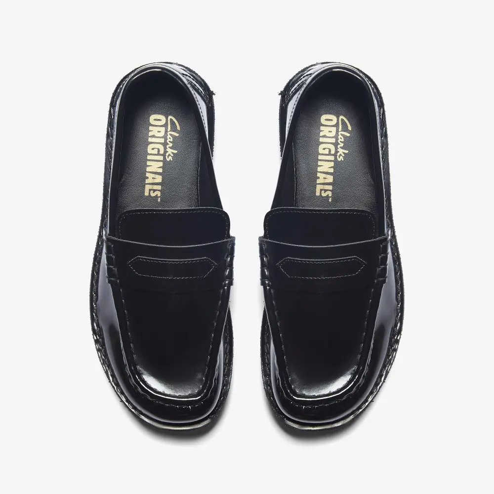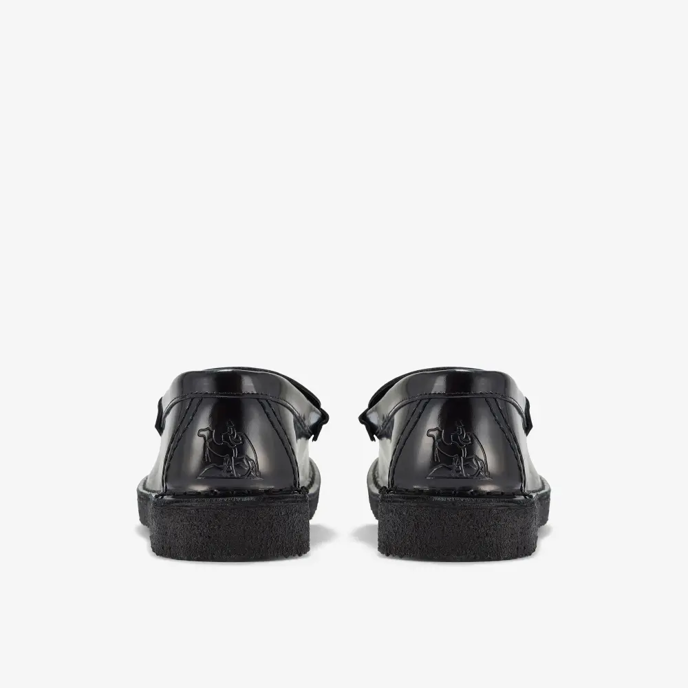 Erhältlich mit schwarzem Lackleder-Obermaterial und schwarzer Kreppsohle.