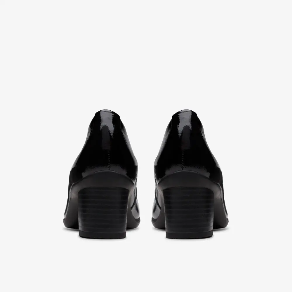 - Obermaterial aus hochwertigem schwarzem Lackleder