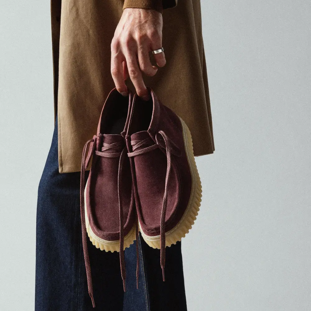 - Zwei geprägte Anhänger (Clarks-Logo und Glastonbury Tor) als Hommage an die Tradition von Clarks