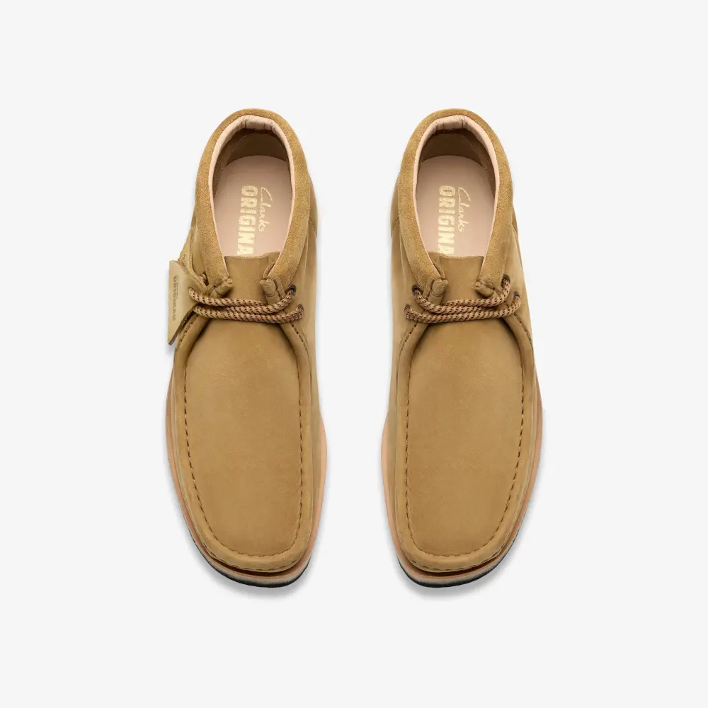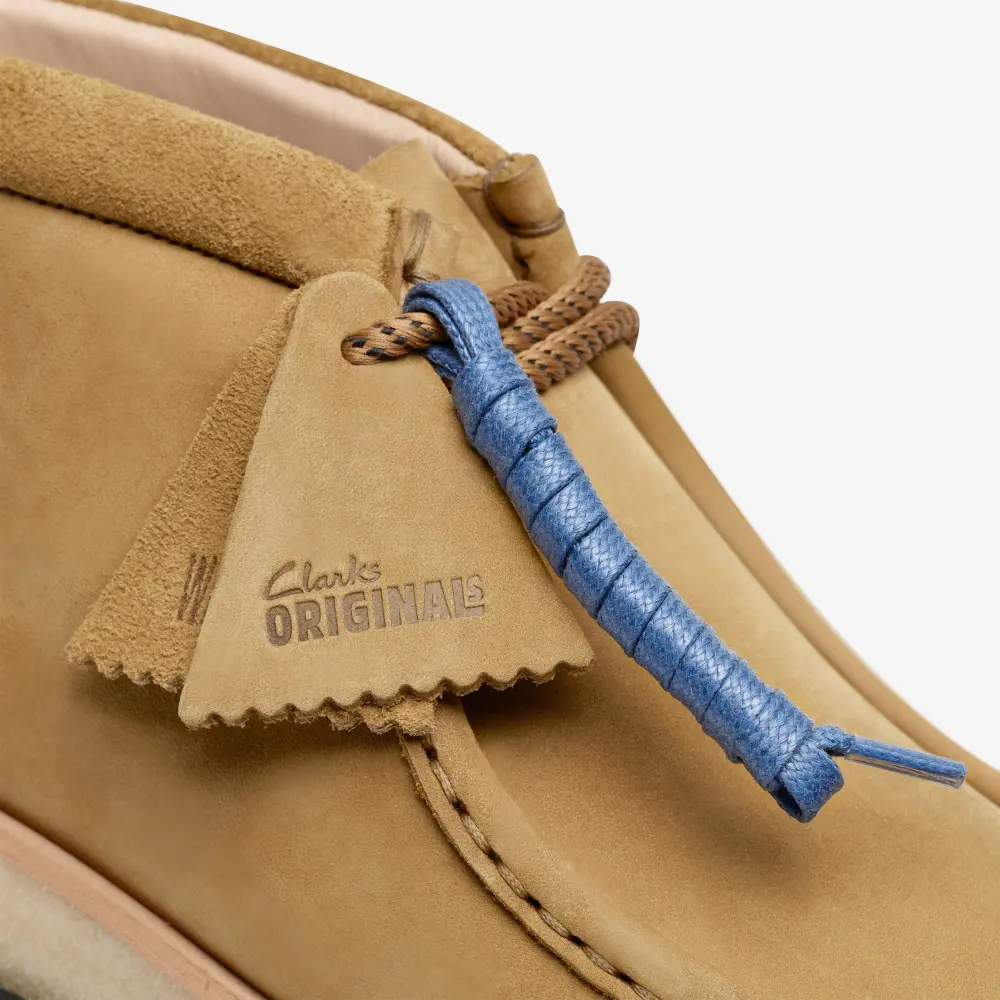 Der Schuh verfügt außerdem über zwei markante Logos – Clarks Originals und Wallabee™ – und wird durch das Clarks Originals-Logo auf der Socke abgerundet, das seine authentische Herkunft unterstreicht.