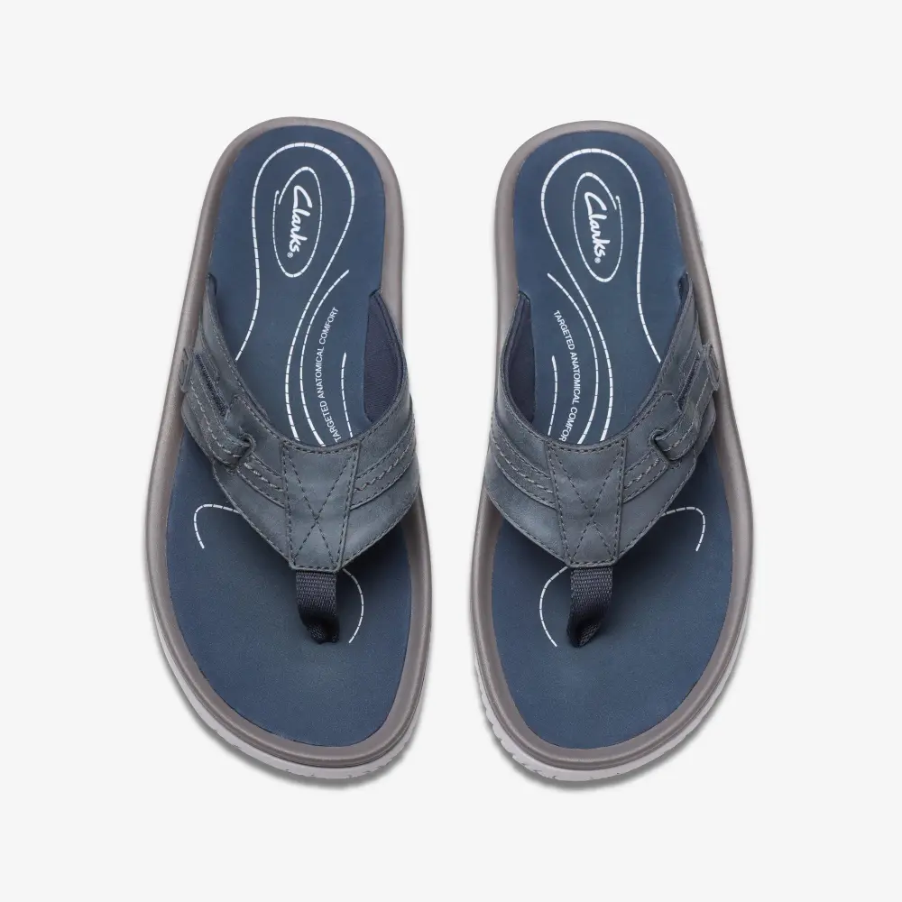 Der klassische Leder-Flip-Flop für jeden Anlass ist pünktlich zum Frühling/Sommer da. Der neue Wesley Sun, ein Mitglied unserer Wesley-Familie, besticht durch seine charakteristische, leichte und stoßdämpfende EVA-Außensohle – ganz im Sinne unseres Clarks-Komfortversprechens. Und für zusätzlichen Komfort sorgt das superweiche EVA-Fußbett für angenehme Dämpfung bei jedem Schritt. Wohin führt dich dein neuer Flip-Flop?