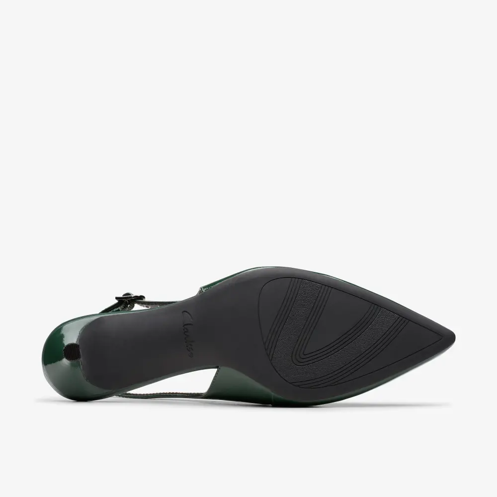 Der Zarey Sling ist eine moderne Interpretation eines klassischen Schuhs und passt perfekt zu jeder Garderobe. Er kombiniert einen formschönen Absatz mit einer eleganten, spitzen Zehenpartie und besticht durch hochwertiges dunkelgrünes Leder für einen edlen Look. Dank des Contour Cushion-Fußbetts und der flexiblen Gummisohle bietet er rund um die Uhr optimalen Tragekomfort.